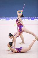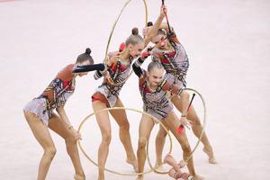 Qrup hərəkətlərində gimnastlar 3 halqa və 2 cüt gürz ilə proqramlarını təqdim ediblər. Bu kateqoriyada da çoxnövçülük üzrə qaliblər müəyyənləşib. Nəticələrə əsasən, 1-ci yeri İsrail komandası, 2-ci yeri İspaniya komandası, 3-cü yeri isə AIN 2 komandası əldə edib.