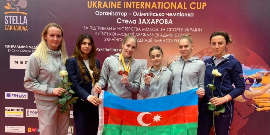 Qadın idman gimnastlarımız Kiyevdən medallarla dönür