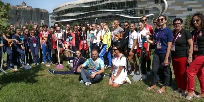 The guests of the World Championships participate in a tree-planting activity